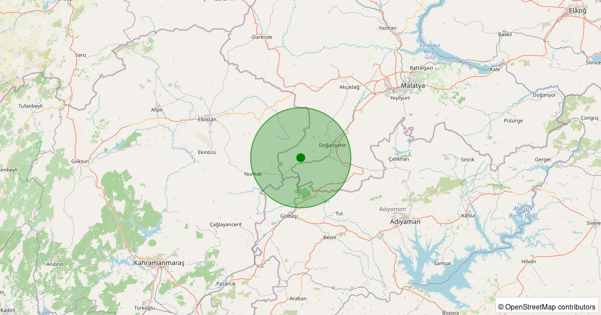 Son 7 gün içinde Doğanşehir - Küçüklü noktasından 100 km yarıçap içerisinde meydana gelen diğer depremler: