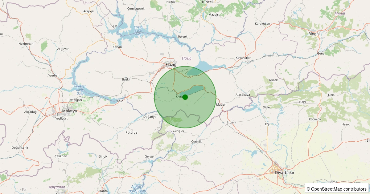 Son 7 gün içinde Sivrice - Sürek Köyü noktasından 100 km yarıçap içerisinde meydana gelen diğer depremler: