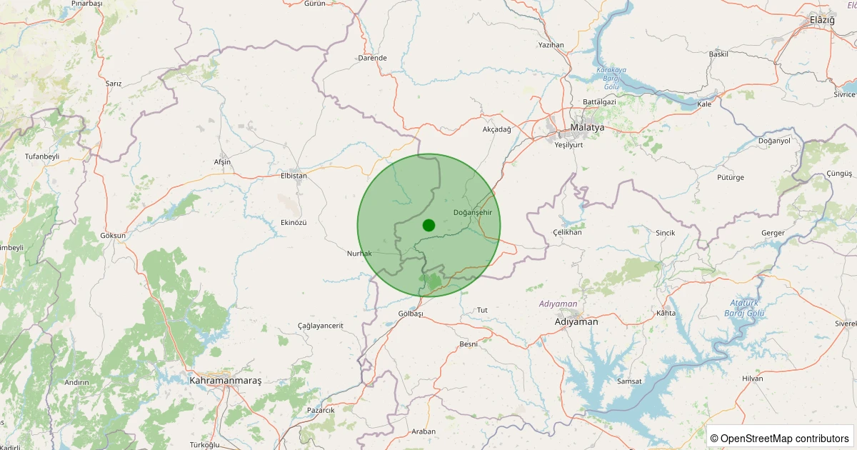 Son 7 gün içinde Doğanşehir - Beğre noktasından 100 km yarıçap içerisinde meydana gelen diğer depremler: