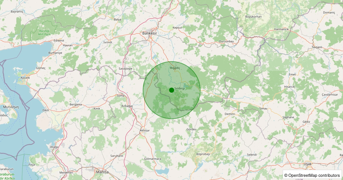 Son 7 gün içinde Sındırgı - Kozlu noktasından 100 km yarıçap içerisinde meydana gelen diğer depremler: