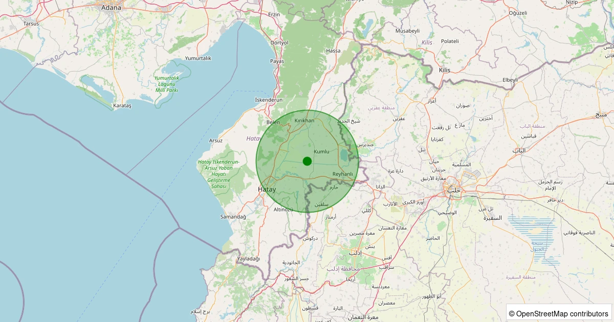 Son 7 gün içinde Reyhanlı - Karacanlık noktasından 100 km yarıçap içerisinde meydana gelen diğer depremler: