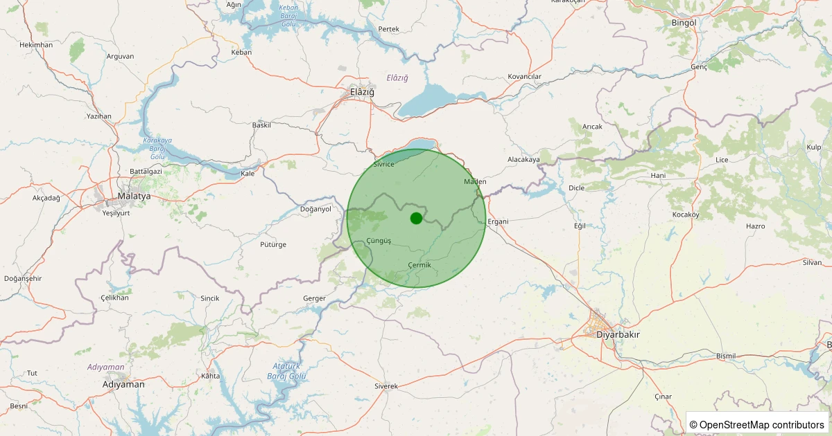 Son 7 gün içinde Çüngüş - Polatuşağı Köyü noktasından 100 km yarıçap içerisinde meydana gelen diğer depremler: