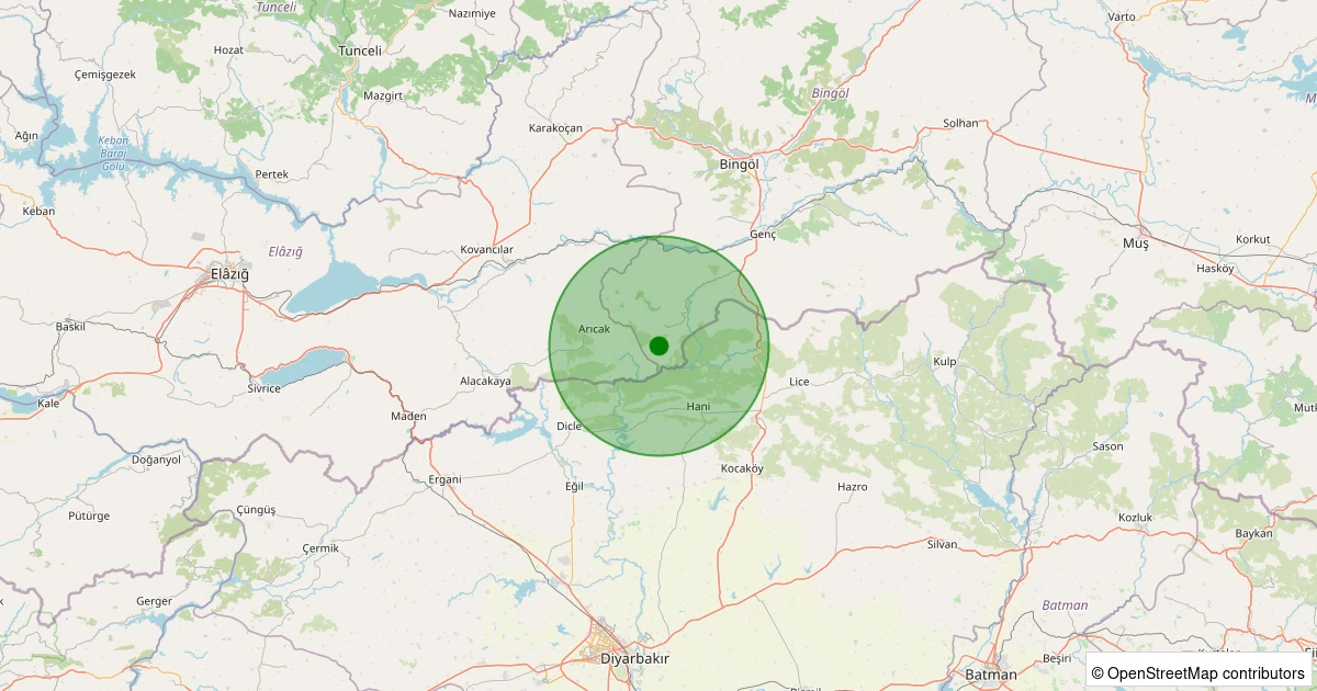 Son 7 gün içinde Genç - Sarıbudak Köyü noktasından 100 km yarıçap içerisinde meydana gelen diğer depremler: