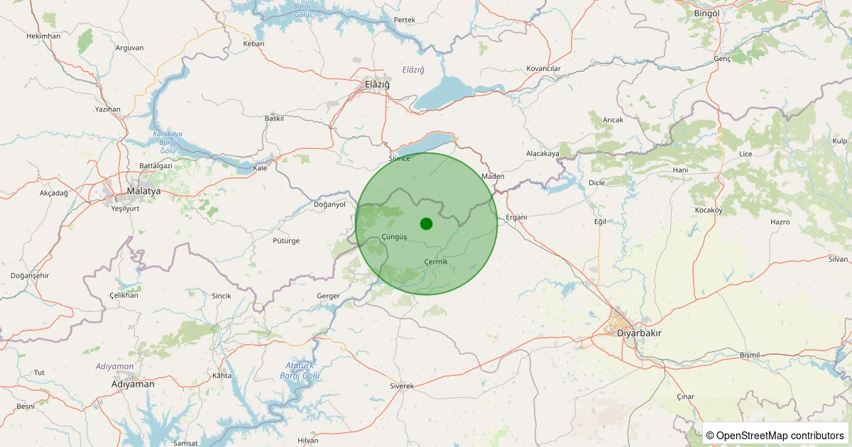 Son 7 gün içinde Çüngüş - Türkmen Köyü noktasından 100 km yarıçap içerisinde meydana gelen diğer depremler: