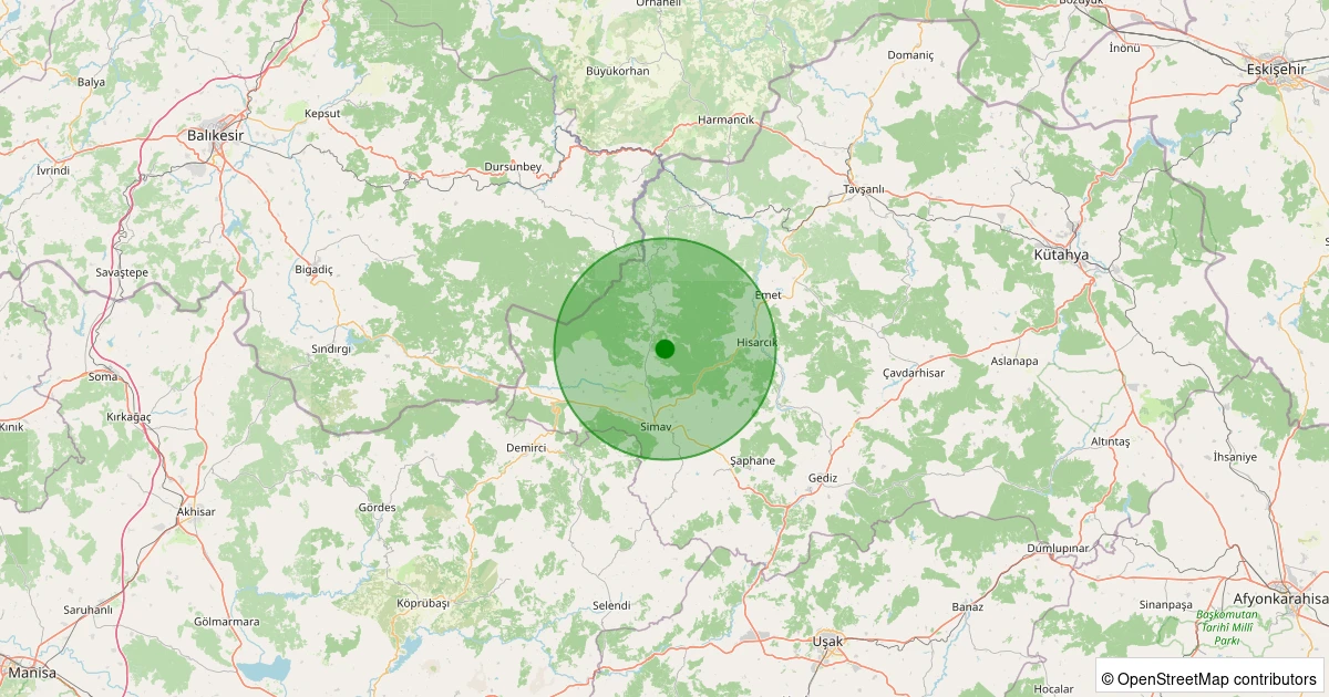 Son 7 gün içinde Simav - Yemişli Köyü noktasından 100 km yarıçap içerisinde meydana gelen diğer depremler: