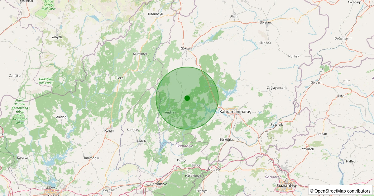 Son 7 gün içinde Andırın - Kargaçayırı Köyü noktasından 100 km yarıçap içerisinde meydana gelen diğer depremler: