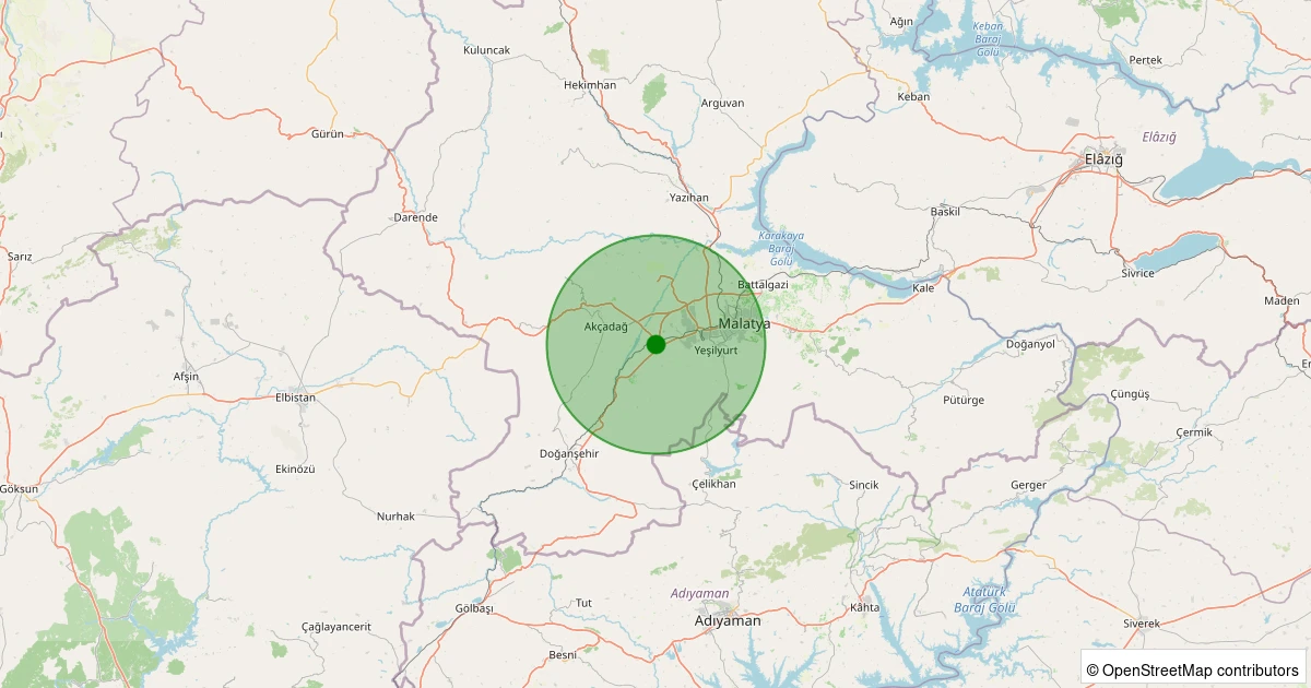Son 7 gün içinde Yeşilyurt - Cafana noktasından 100 km yarıçap içerisinde meydana gelen diğer depremler: