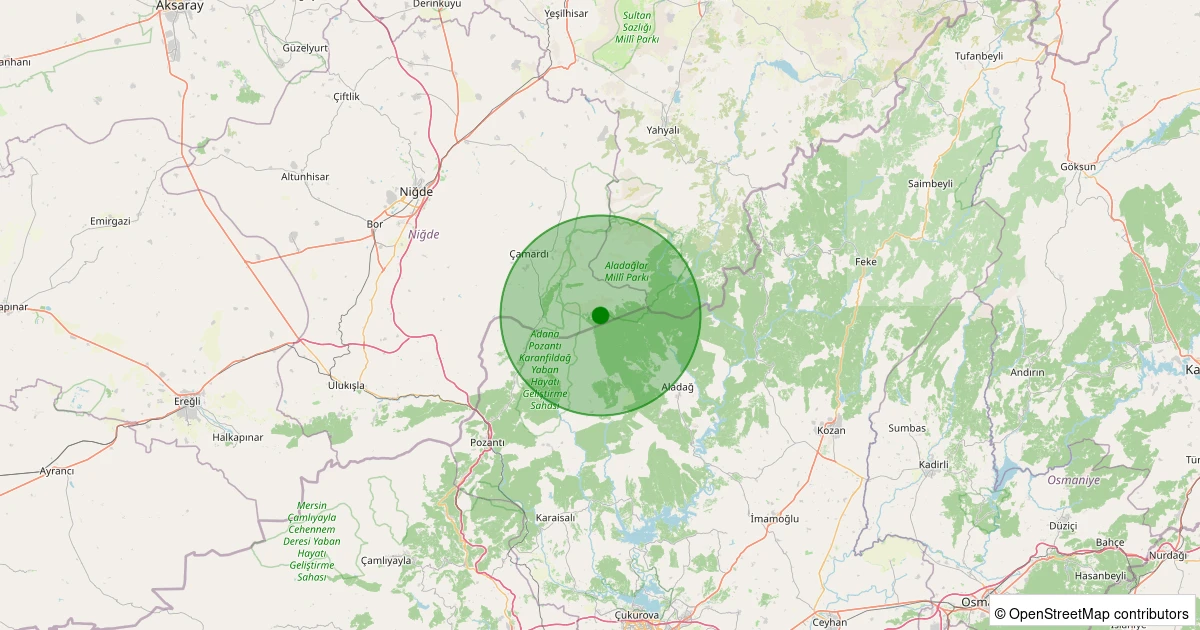 Son 7 gün içinde Aladağ - Kökez noktasından 100 km yarıçap içerisinde meydana gelen diğer depremler: