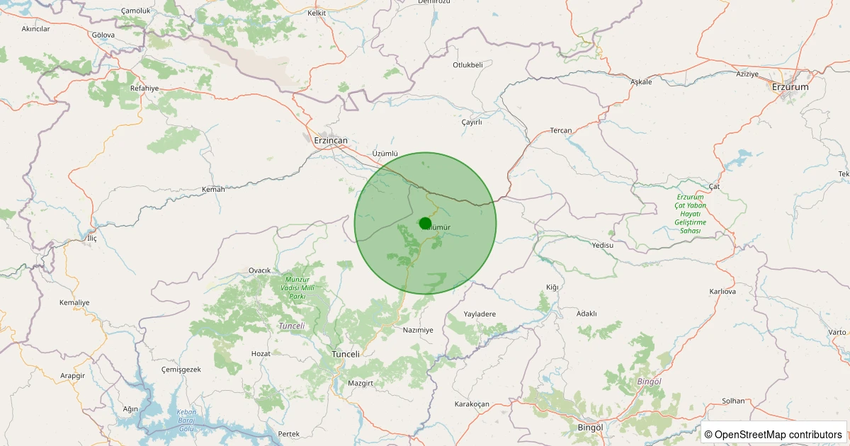 Son 7 gün içinde Pülümür - Başkalecik Köyü noktasından 100 km yarıçap içerisinde meydana gelen diğer depremler: