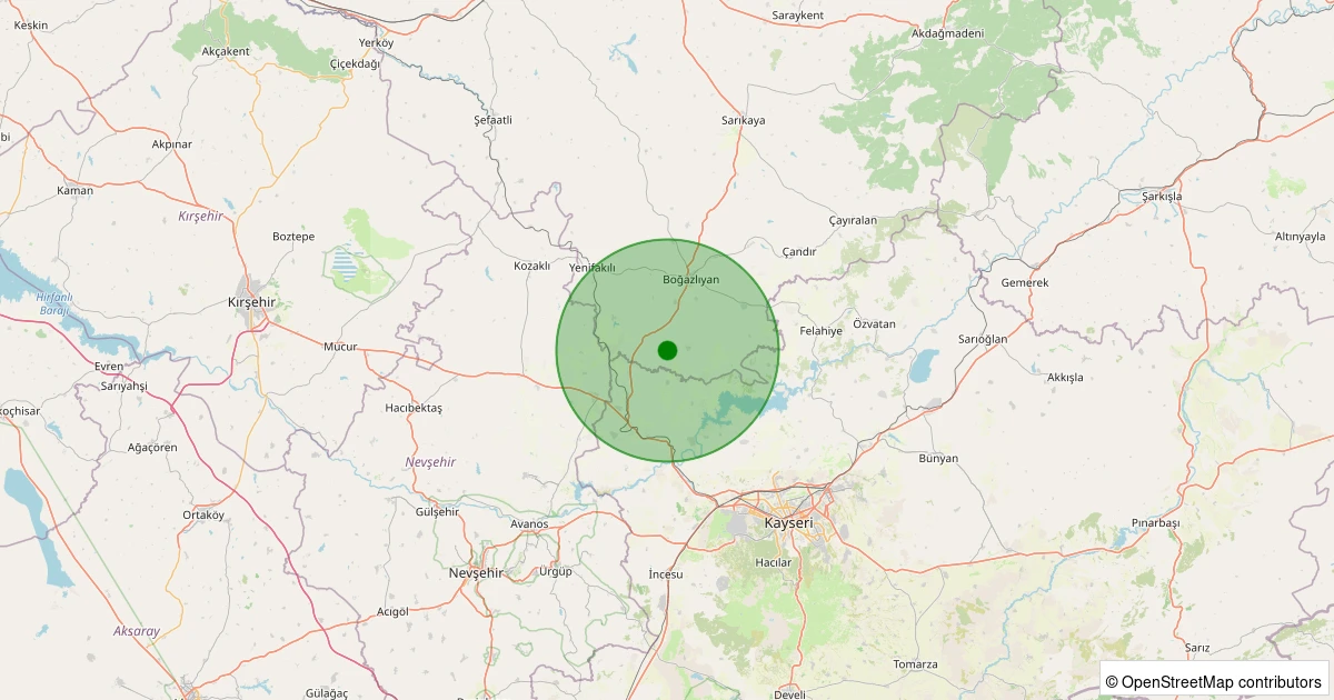 Son 7 gün içinde Boğazlıyan - Aşağıhasinli noktasından 100 km yarıçap içerisinde meydana gelen diğer depremler: