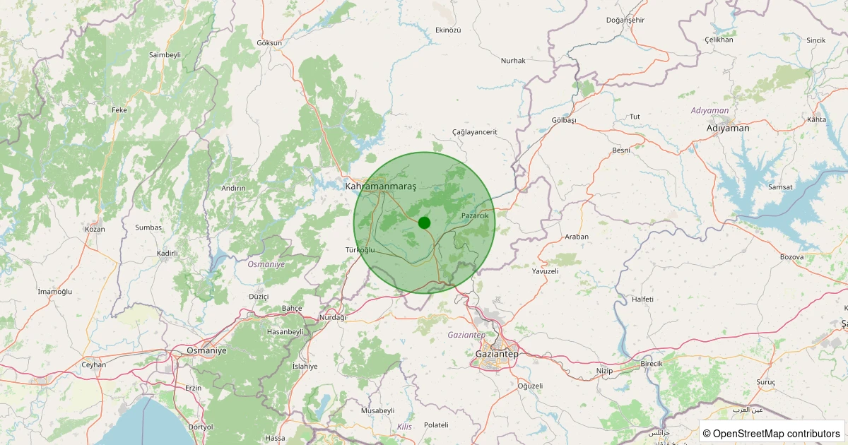 Son bir hafta içerisinde Kahramanmaraş şehri Dulkadiroğlu - Çınarlı noktasından 100 km yarıçap içerisinde toplamda 209 deprem kaydedilmiştir. Bu depremlerden en büyüğü 3.2 büyüklüğünde ve en sığ odaklısı 0.00 kilometre derinlikte gerçekleşmiştir.