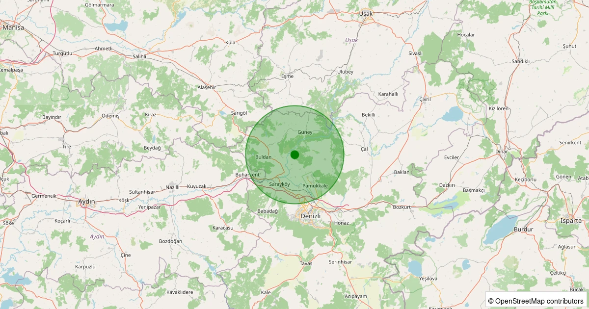 Son 7 gün içinde Buldan - Yenicekent noktasından 100 km yarıçap içerisinde meydana gelen diğer depremler: