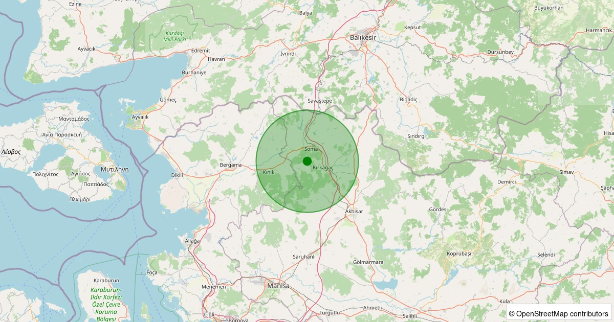 Son 7 gün içinde Soma noktasından 100 km yarıçap içerisinde meydana gelen diğer depremler: