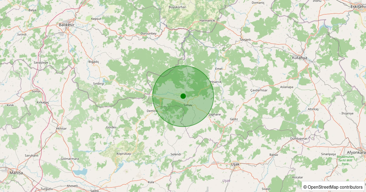 Son 7 gün içinde Simav - Çitgöl noktasından 100 km yarıçap içerisinde meydana gelen diğer depremler: