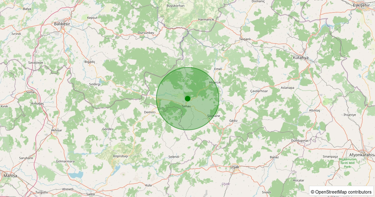 Son 7 gün içinde Simav - Hüsüm noktasından 100 km yarıçap içerisinde meydana gelen diğer depremler:
