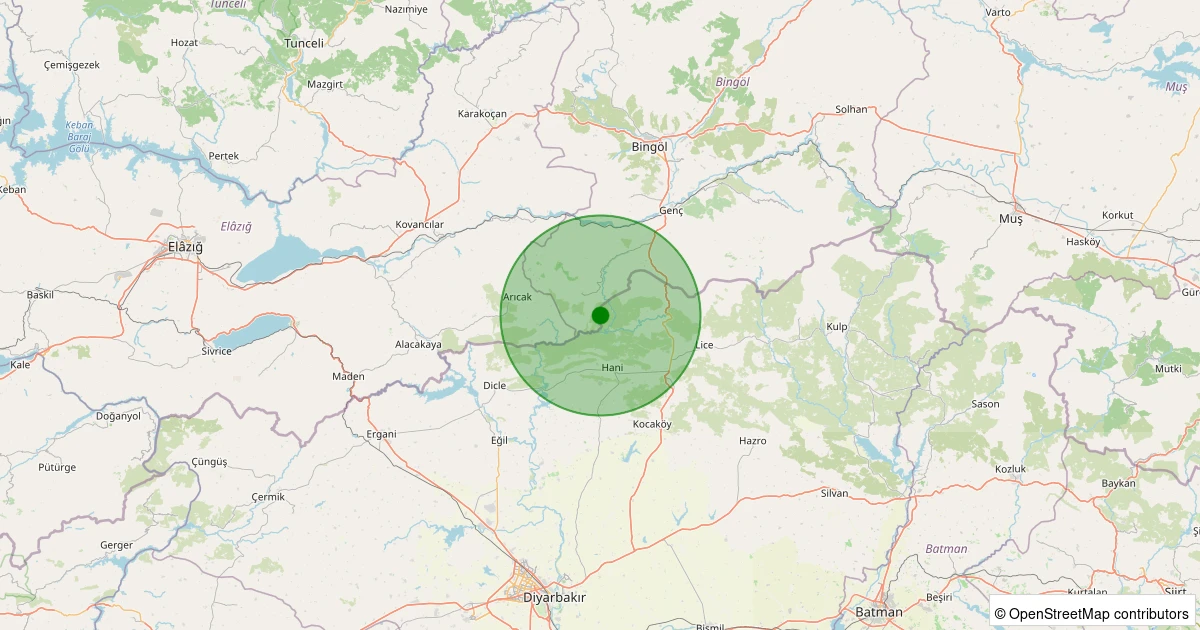 Son 7 gün içinde Hani - Kaledibi noktasından 100 km yarıçap içerisinde meydana gelen diğer depremler: