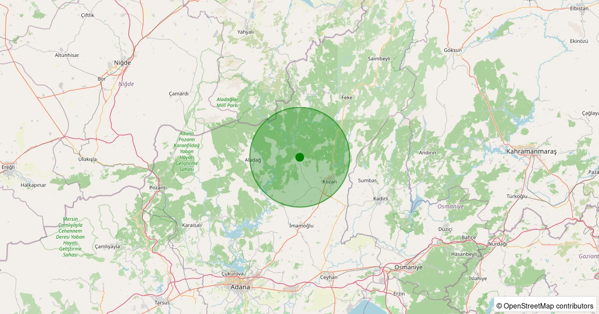 Son 7 gün içinde Kozan - Akdam noktasından 100 km yarıçap içerisinde meydana gelen diğer depremler: