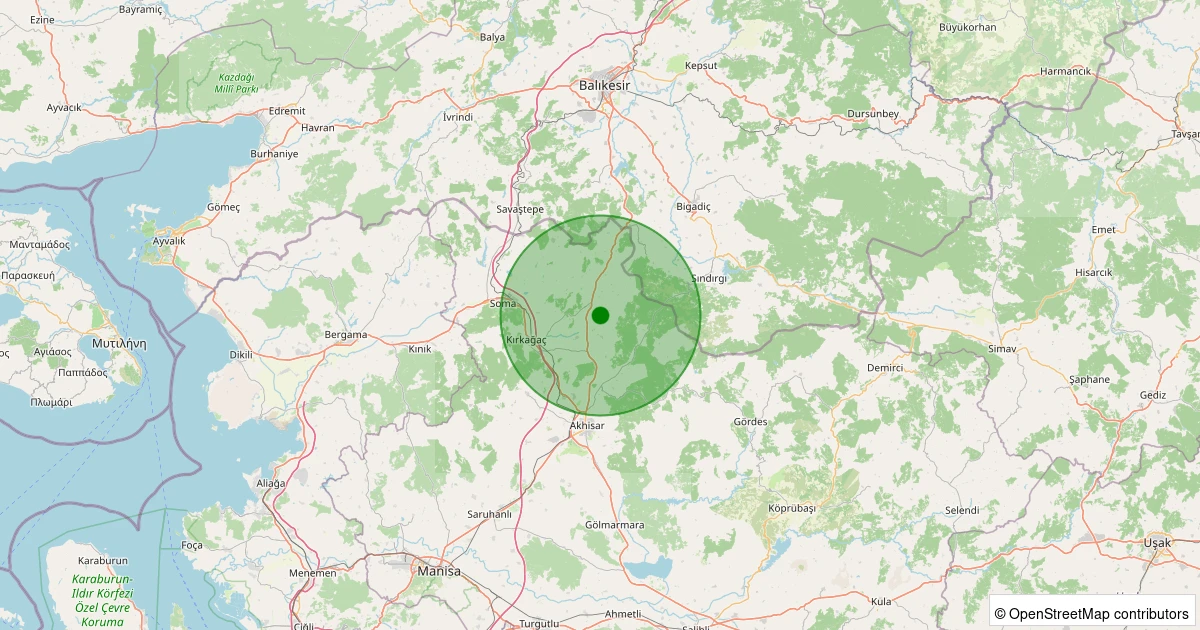 Son 7 gün içinde Kırkağaç - Çaltıcak noktasından 100 km yarıçap içerisinde meydana gelen diğer depremler: