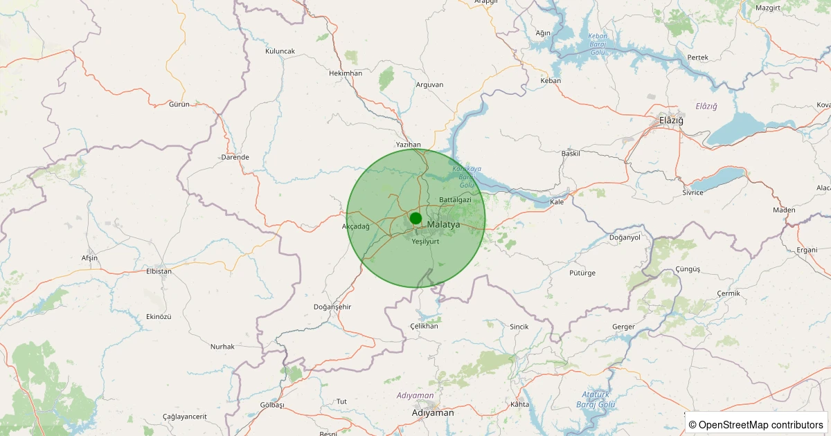 Son 7 gün içinde Yeşilyurt - Yakınca noktasından 100 km yarıçap içerisinde meydana gelen diğer depremler: