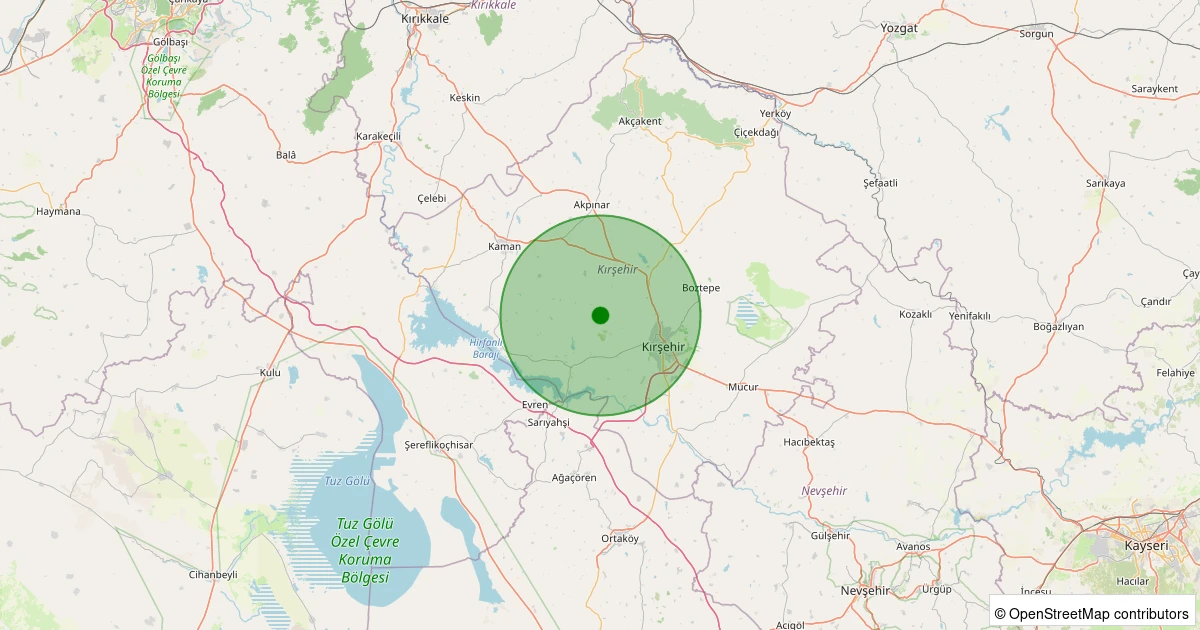 Son 7 gün içinde Kırşehir noktasından 100 km yarıçap içerisinde meydana gelen diğer depremler: