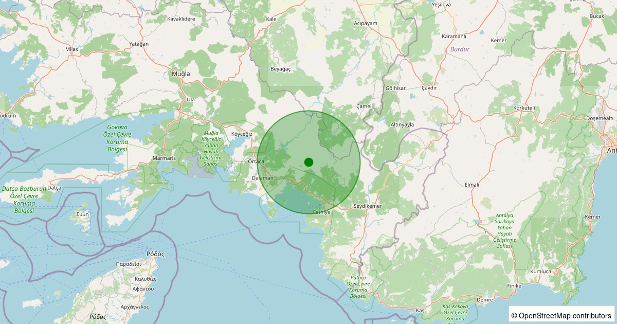 Son 7 gün içinde Dalaman - Darıyeri noktasından 100 km yarıçap içerisinde meydana gelen diğer depremler:
