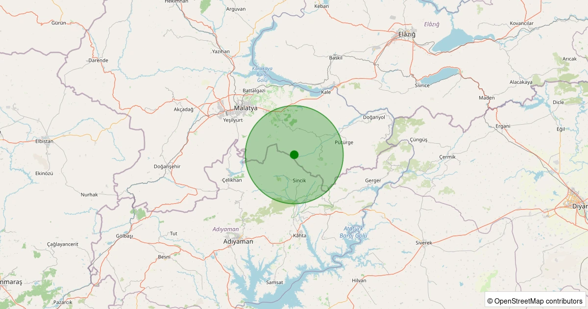 Son 7 gün içinde Pütürge - Arıtoprak Köyü noktasından 100 km yarıçap içerisinde meydana gelen diğer depremler: