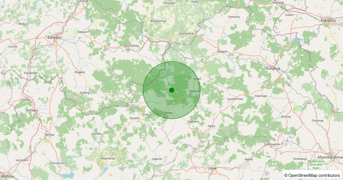 Son 7 gün içinde Simav - Yeşildere Köyü noktasından 100 km yarıçap içerisinde meydana gelen diğer depremler: