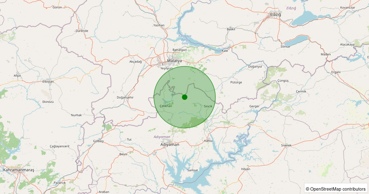 Son 7 gün içinde Çelikhan - Mutlu Köyü noktasından 100 km yarıçap içerisinde meydana gelen diğer depremler: