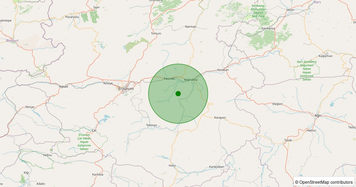 Son 7 gün içinde Pasinler - Yastıktepe noktasından 100 km yarıçap içerisinde meydana gelen diğer depremler: