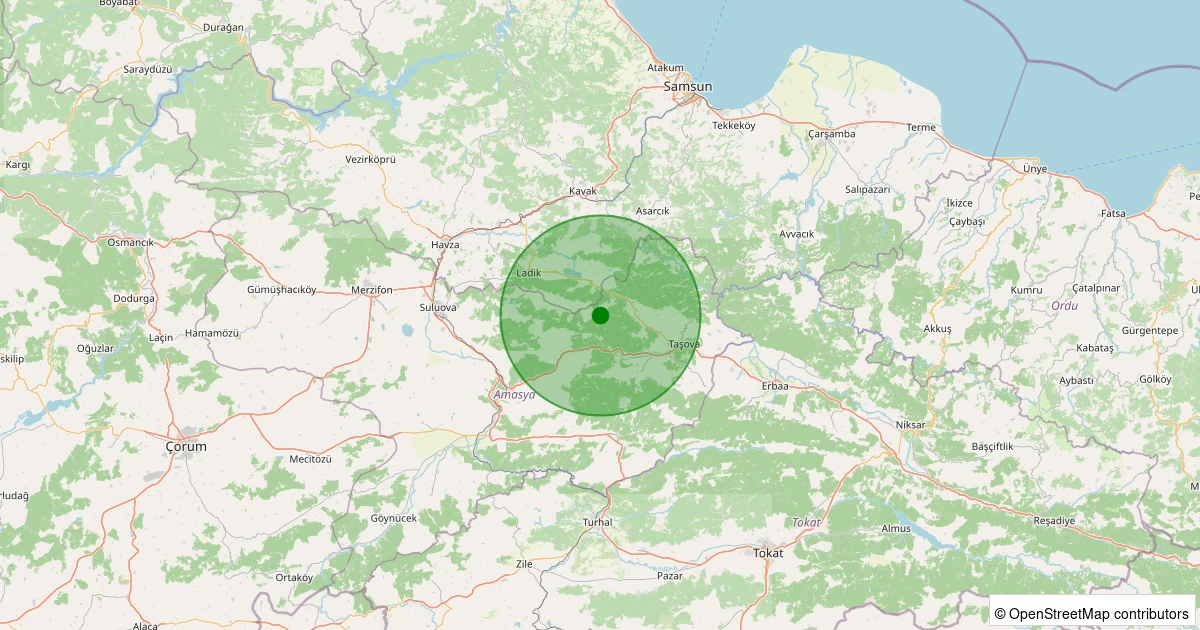Son 7 gün içinde Taşova - Boraboy Köyü noktasından 100 km yarıçap içerisinde meydana gelen diğer depremler: