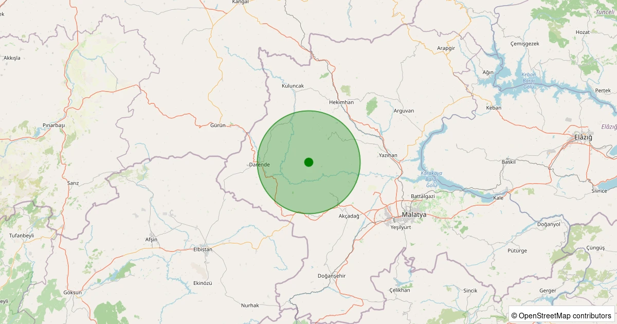 Son 7 gün içinde Darende - Ilıca-Fatıh noktasından 100 km yarıçap içerisinde meydana gelen diğer depremler: