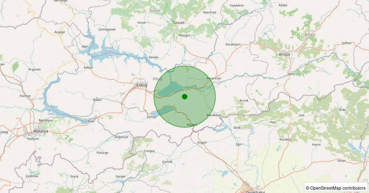 Son bir hafta içerisinde Elazığ şehri Maden - Kartaldere Köyü noktasından 100 km yarıçap içerisinde toplamda 127 deprem kaydedilmiştir. Bu depremlerden en büyüğü 4.3 büyüklüğünde ve en sığ odaklısı 1.70 kilometre derinlikte gerçekleşmiştir.