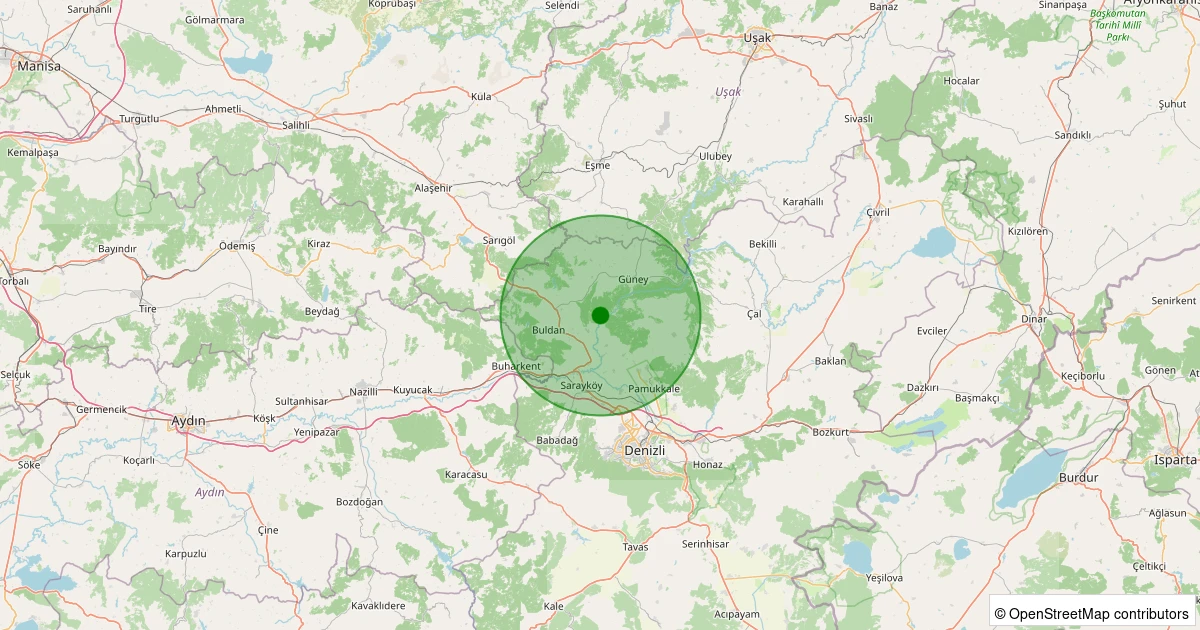 Son 7 gün içinde Buldan - Yenicekent noktasından 100 km yarıçap içerisinde meydana gelen diğer depremler: