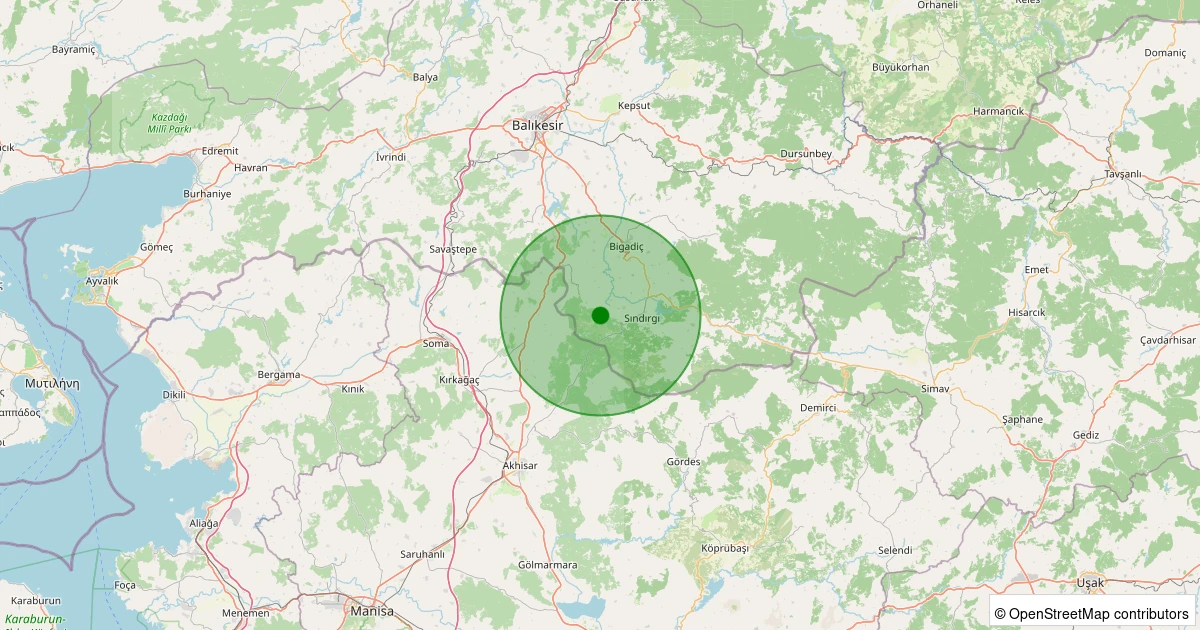 Son 7 gün içinde Sındırgı - Alakır noktasından 100 km yarıçap içerisinde meydana gelen diğer depremler: