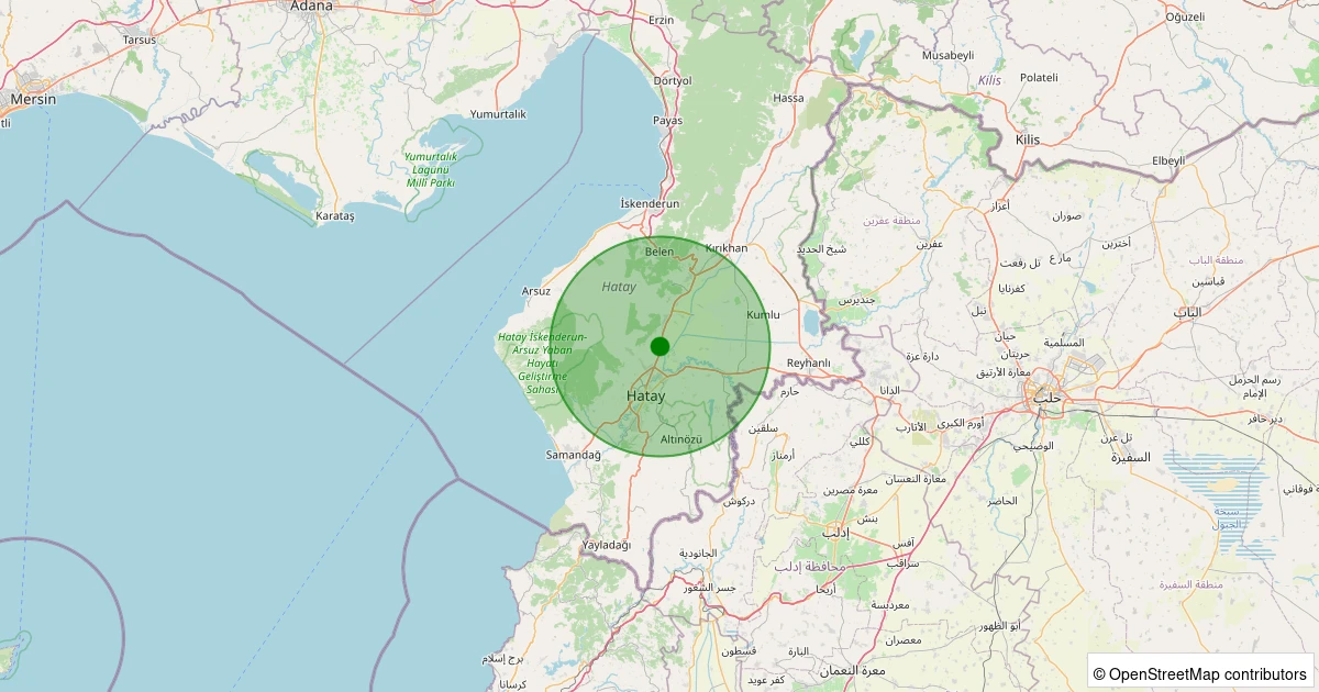 Son 7 gün içinde Antakya - Üçgedik noktasından 100 km yarıçap içerisinde meydana gelen diğer depremler: