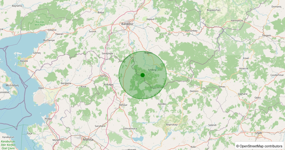 Son 7 gün içinde Sındırgı - Kertil noktasından 100 km yarıçap içerisinde meydana gelen diğer depremler: