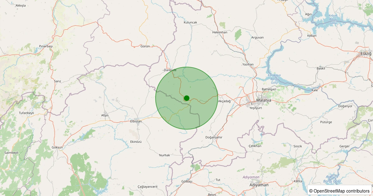 Son 7 gün içinde Darende - Yukarıulupınar noktasından 100 km yarıçap içerisinde meydana gelen diğer depremler: