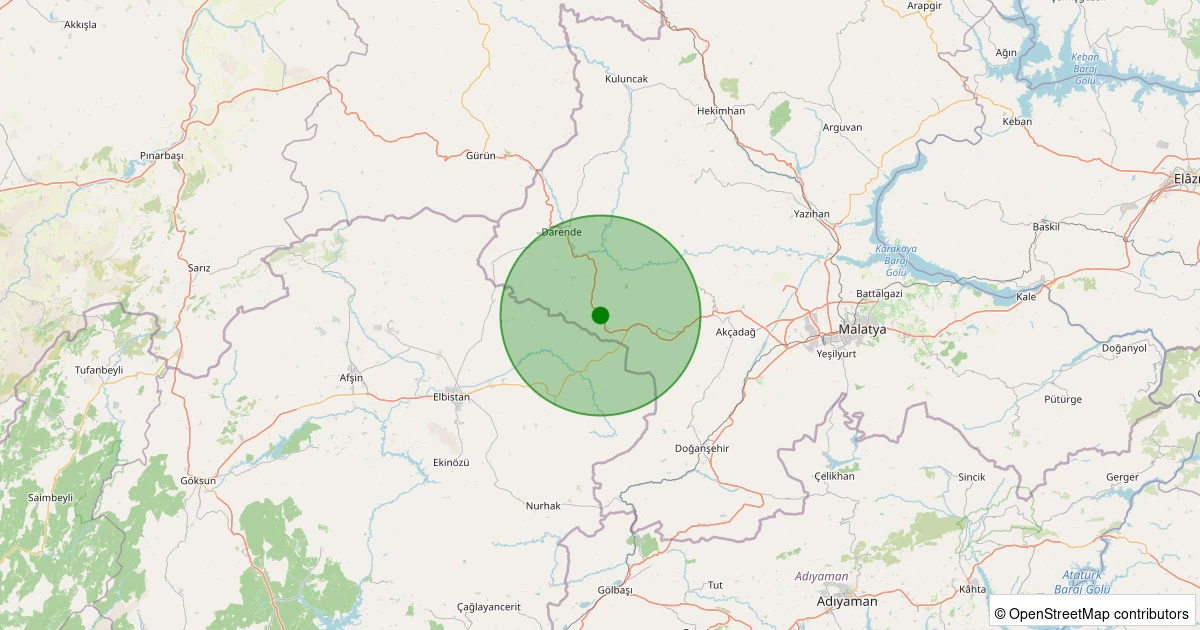 Son 7 gün içinde Darende - Yukarıulupınar noktasından 100 km yarıçap içerisinde meydana gelen diğer depremler: