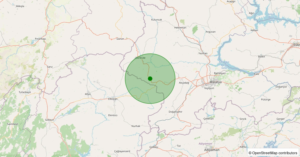 Son 7 gün içinde Darende - Yukarıulupınar noktasından 100 km yarıçap içerisinde meydana gelen diğer depremler: