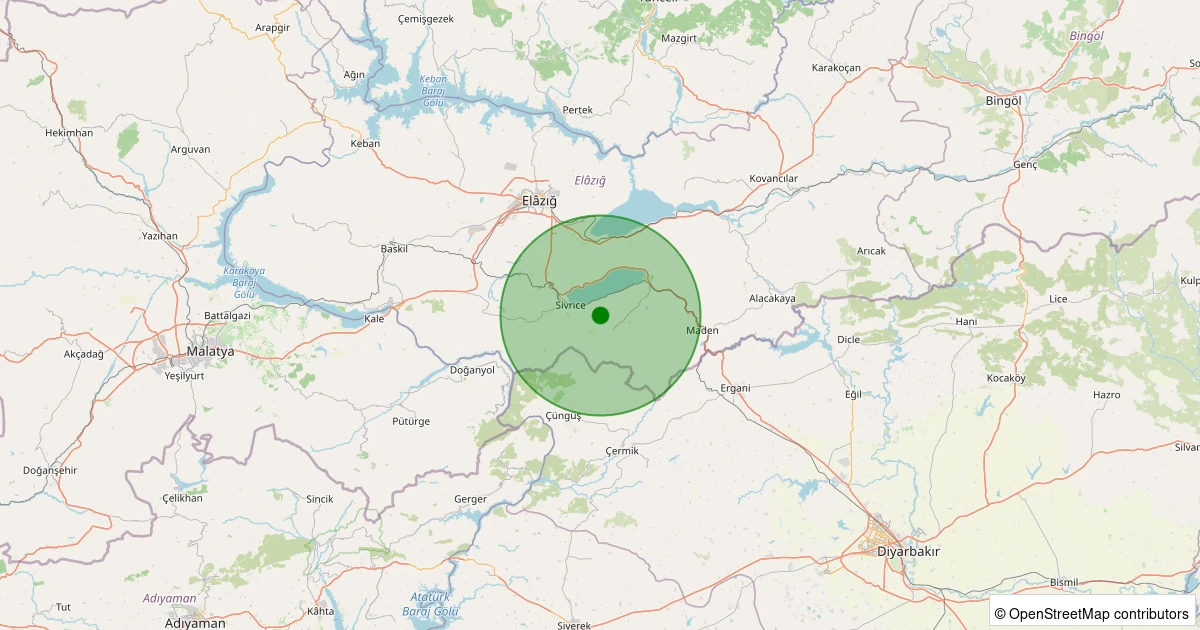 Son 7 gün içinde Sivrice - Elmasuyu Köyü noktasından 100 km yarıçap içerisinde meydana gelen diğer depremler: