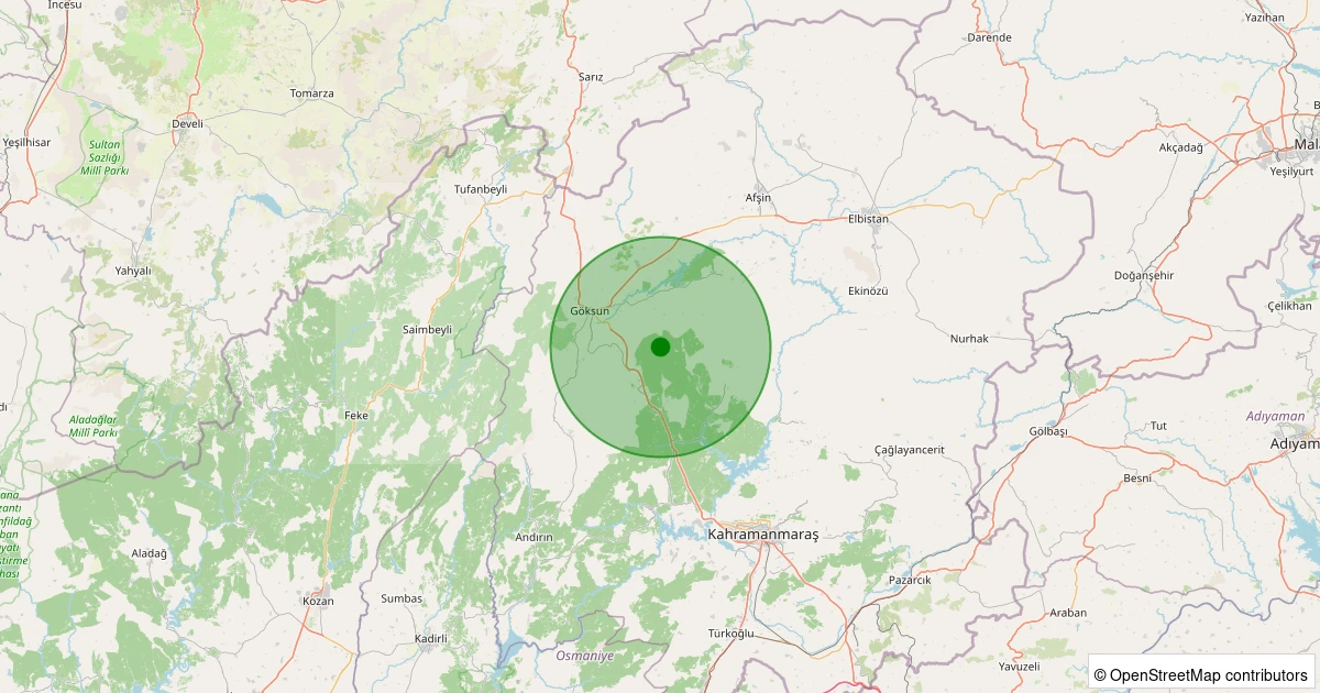 Son 7 gün içinde Onikişubat - Şahinkayası Kurtuluş noktasından 100 km yarıçap içerisinde meydana gelen diğer depremler: