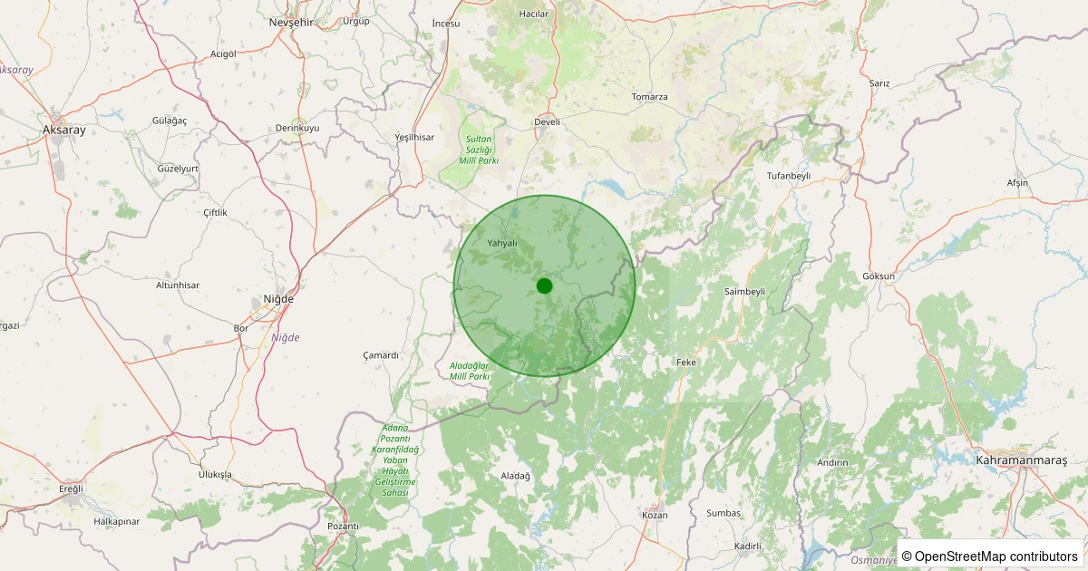 Son 7 gün içinde Yahyalı - Yenice noktasından 100 km yarıçap içerisinde meydana gelen diğer depremler:
