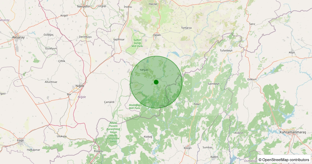 Son 7 gün içinde Yahyalı - Yenice noktasından 100 km yarıçap içerisinde meydana gelen diğer depremler: