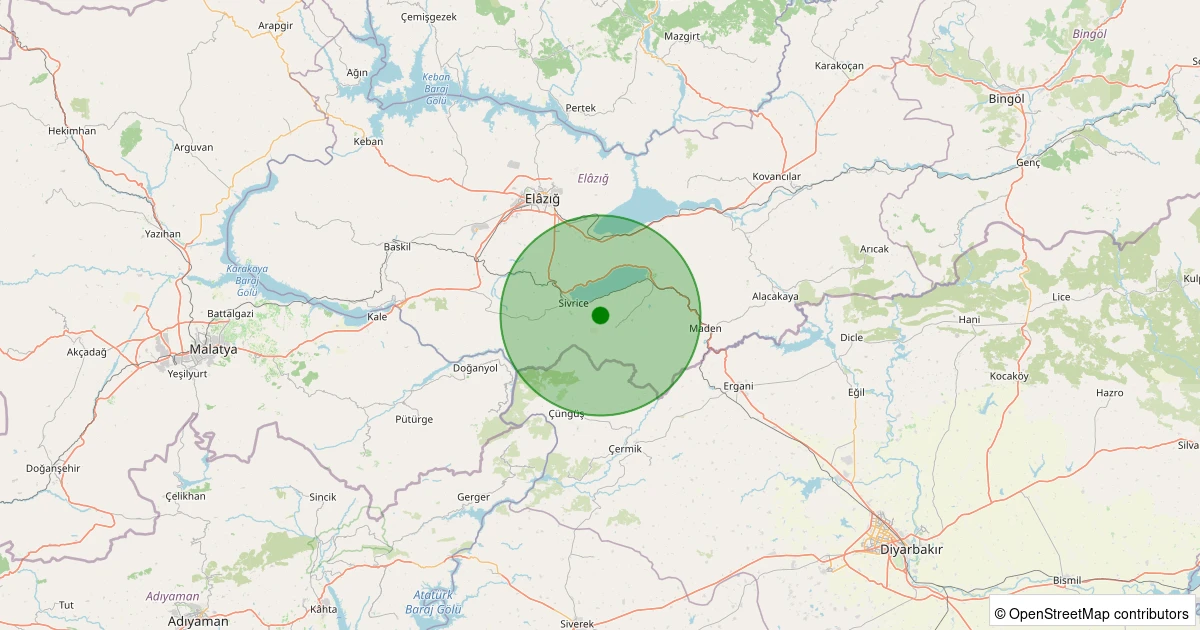 Son 7 gün içinde Sivrice - Elmasuyu Köyü noktasından 100 km yarıçap içerisinde meydana gelen diğer depremler: