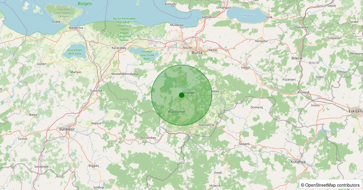 Son 7 gün içinde Orhaneli - Sadağı noktasından 100 km yarıçap içerisinde meydana gelen diğer depremler: