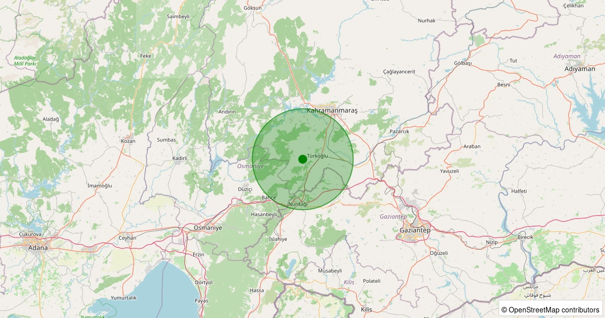 Son 7 gün içinde Türkoğlu noktasından 100 km yarıçap içerisinde meydana gelen diğer depremler: