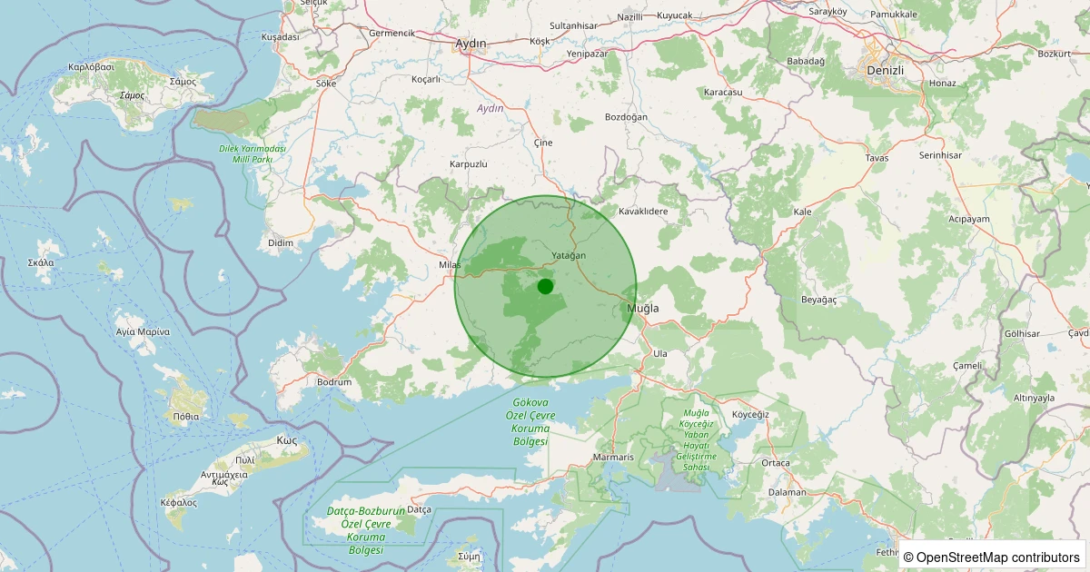 Son bir hafta içerisinde Muğla şehri Milas - Yoğunoluk noktasından 100 km yarıçap içerisinde toplamda 85 deprem kaydedilmiştir. Bu depremlerden en büyüğü 3.2 büyüklüğünde ve en sığ odaklısı 0.00 kilometre derinlikte gerçekleşmiştir.