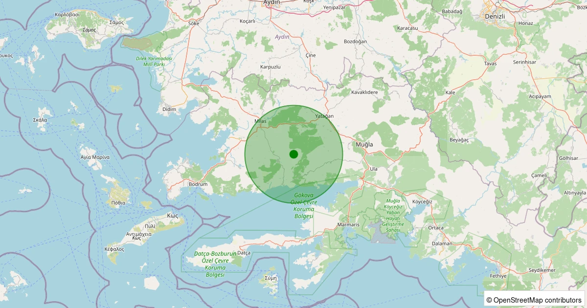 Son 7 gün içinde Milas - Yoğunoluk noktasından 100 km yarıçap içerisinde meydana gelen diğer depremler: