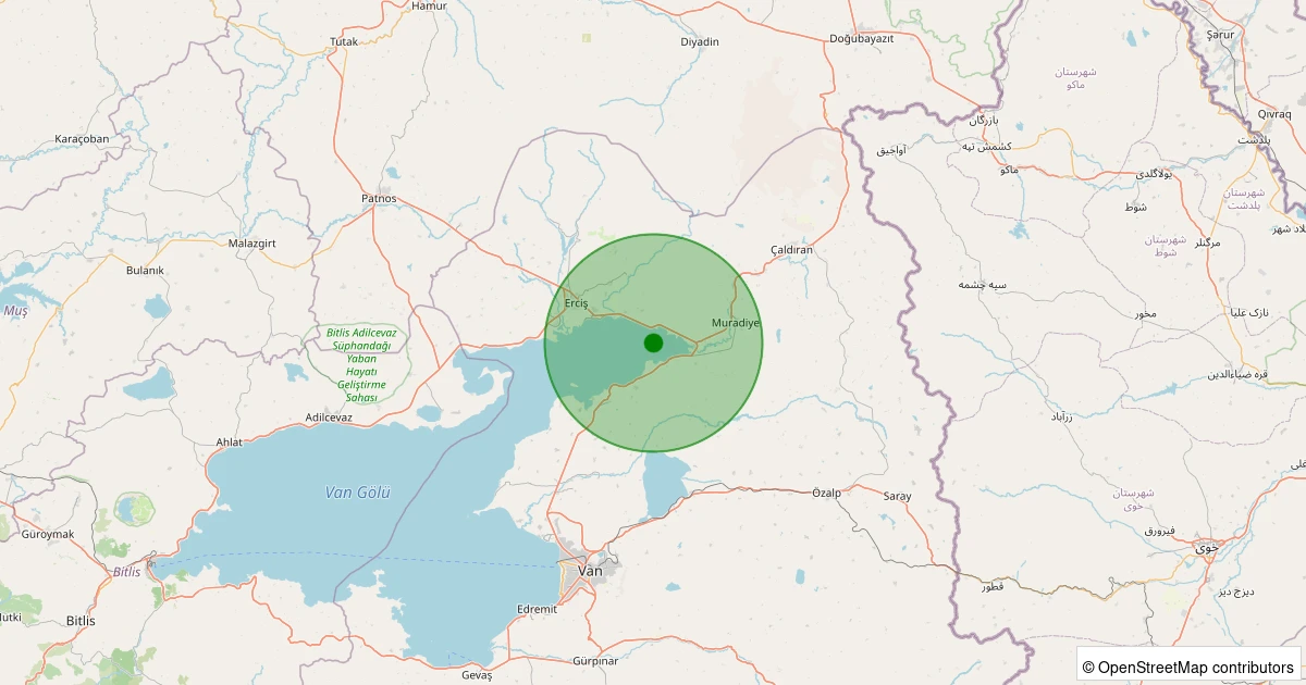 Son 7 gün içinde Erciş noktasından 100 km yarıçap içerisinde meydana gelen diğer depremler: