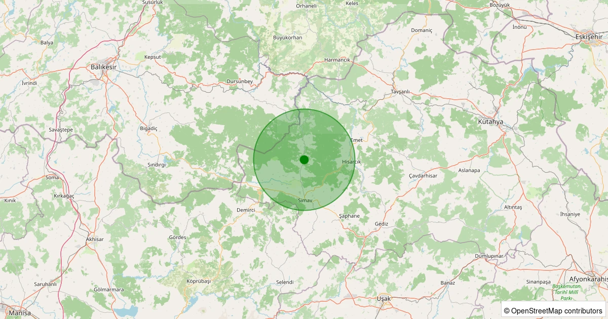 Son 7 gün içinde Simav - Yeşildere Köyü noktasından 100 km yarıçap içerisinde meydana gelen diğer depremler:
